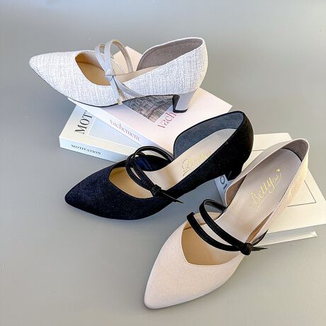 ノットデザインのダブルベルトがアクセントになったパンプス。