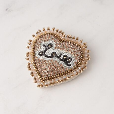 キラキラビーズやストーンを敷き詰めたブローチ。