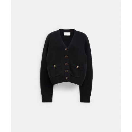 暖かく心地よいウールで編み上げた、Vネックカーディガン。リブトリムで仕上げたリラックスフィットのデザインに、パッチポケットのコーチの“C”のプラークが目を引きます。