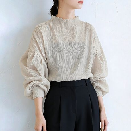 ゆったりとしたぽわん袖とシンプルながらも印象的なデザインで、