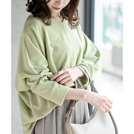 鎖骨ラインをきれいに見せてくれる開きすぎないVネックで女性らしい印象に。