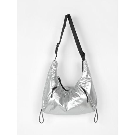 メタリック素材を使用した、トレンドライクな印象のボディバッグ。