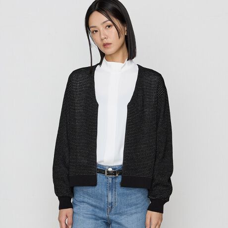 すっきりしたVネックとボリューム袖がポイントのモールジャカードジップアップです。