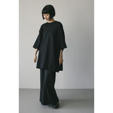 モデル身長165cm(FREEサイズ着用)シワになりにくく程よくハリのあるダンボール生地を使用したボクシーシルエットのミニワンピース。厚みがあるのに見た目以上に軽くて日常使いしやすい一枚。襟元はカシュクールネックで首元をすっきりと華奢に見せてくれるデザインに。脇は前にふっているのでサイドからみた時にすっきりと見えるシルエットに仕上げました。ポケット付き。ストレッチあり、透け感なし。【お手入れ方法】マシンウォッシュ可