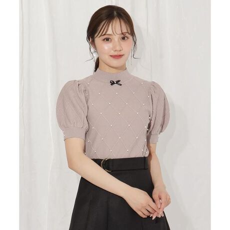 パールがトッピングされたスウィートな主役級ニットトップス【Design】・立体感のあるダイヤ柄のデザインにパールを添えた、ダイヤ柄パールパフニット。・ふんわりと膨らんだパフスリーブが可愛らしい印象をアップしてくれます。・フィット感のあるネックデザインにリボンを添えて、ガーリーなエッセンスをプラス♪・袖はリブ仕様になっており、ここにもパールをトッピングしました。・ミニスカートを合わせてガーリーなコーディネートに仕上げたり、ロングスカートを合わせて大人フェミニンなコーディネートに仕上げたり、スタイリングは色々◎・コンパクトな丈感なので、ハイウエストのボトムスと合わせるのがおすすめ!【Fabric】・伸縮性のあるニット生地を使用。・ご自宅でお手入れが出来るのも嬉しいポイント♪・エクリュ、ピンク、ブラックの3色展開となります。【Care】手洗い可能
