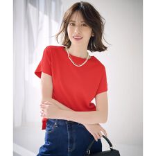 ■素材伸縮性のある糸に極細のストレッチ糸を加えることで、もっちりとした着心地と体のラインをひろいすぎない適度な肉感、きゅっとつまった編地の表情がポイントの素材です。強撚糸のもつ光沢感がさらに上品な印象にしています。コーディネートの鮮度を上げてくれる発色の良いカラーが揃っています。また、接触冷感性、UVケア性を兼ね備えているので、秋の始めから着用できる素材です。