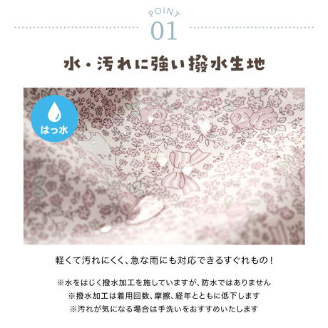 ※撥水加工は着用回数、摩擦、経年とともに低下します