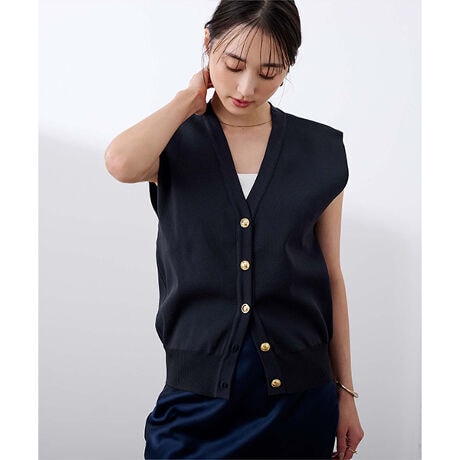 ゴールド釦コクーンニットベスト