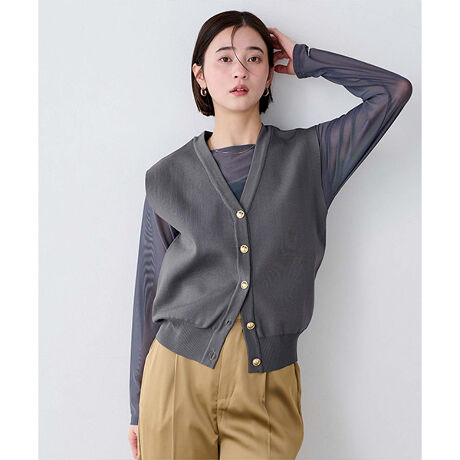 ゴールド釦コクーンニットベスト