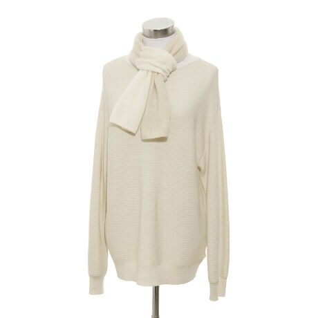バイカラーが首元のアクセントになってくれるデザイン。大判タイプではないプチスタイルですがほどよいサイズ感で持ち運びにも便利なサイズ感です。