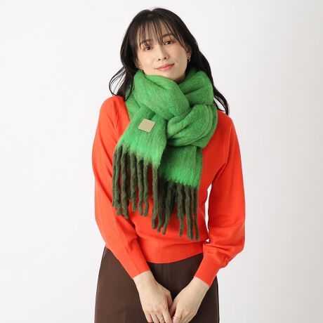ふっくらとふくらみのあるフリンジマフラー。