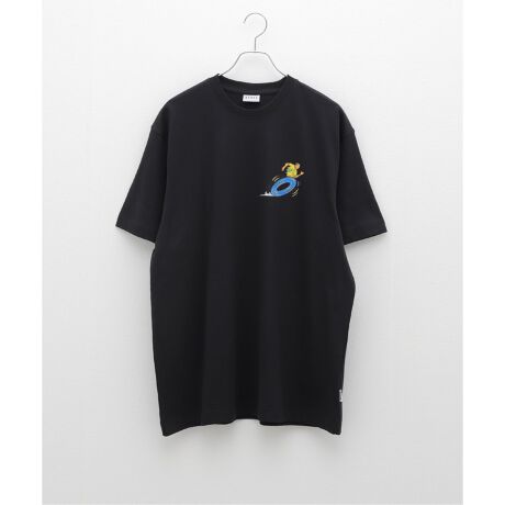 Catch Him If You Canとあるように、コミカルにその足の速さを強調したプリントは、ブラックのTシャツのボディに良く映えるカラーリング。