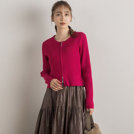 トレンドのダブルジップデザインがポイントになったコンパクトなリブカーディガン。