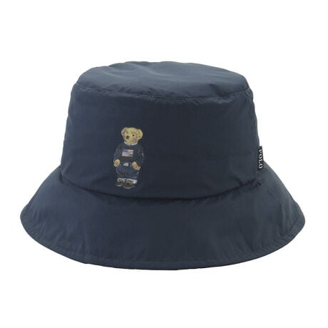 ブランドアイコンのポロベアの刺繍がされたシンプルなレインハット。
