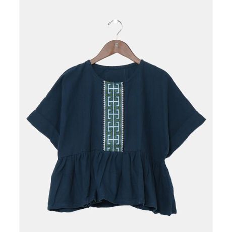 肌触りのいいタイコットンを使用した、夏まで着られるショート丈トップス。実際にモン族の民族衣装にも使われている刺しゅうのテープを使用した本格派アイテム。モン族は、タイや中国南部、ベトナムなどの山岳地域に居住する山岳少数民族。”モン”は空に一番近い民族である「空の民」を意味します。