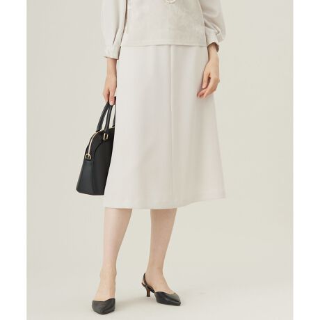 ■デザインシンプルな4枚はぎのセミフレアスカートです。素材の持つ程よい肉感としなやかな落ち感により、広がりすぎない程よいボリューム感のフレアを綺麗に表現しています。同素材のジャケットとセットアップでの着用がおすすめです。ポケット付きのデザインです。通勤やセレモニーシーンなどに活躍します。■素材トリアセテートと特殊なポリエステルを使用した平二重素材です。シルキーでさらっとしたタッチと膨らみ感、適度な反発性を兼ね備えたことで、すっきりとした綺麗なフォルムになり、体のラインが響きにくい素材に仕上がりました。適度なストレッチ性もあるので快適な着心地です。シワになりにくく、シワになっても取れやすい点もポイントです。