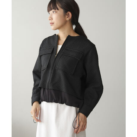 表面に凹凸感のあるふくれジャガード生地で仕上げたブルゾン。