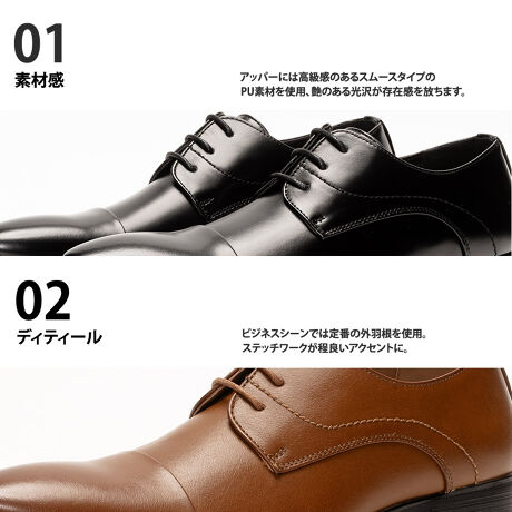 定番のストレートチップを配した、どなたでも使いやすいベーシックなデザイン。
