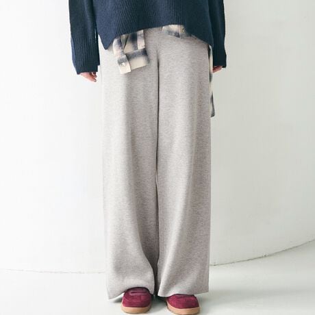 リラックス感のある穿き心地ながら、すっきりとした印象に仕上がる大人のニットパンツ。