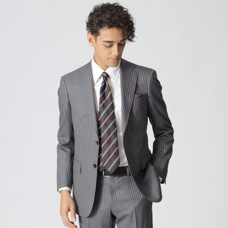 2024年 秋冬登場 ライトグレーストライプ柄スーツ。