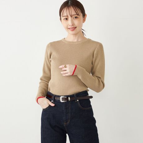 細かいラメがさりげなくきらめく、上品な印象のリブニット。