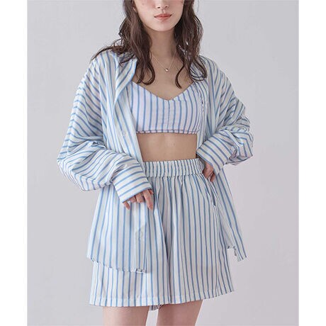 同じストライプ柄の商品展開もあるので、一緒にコーディネートできるラッシュガードシャツです◎