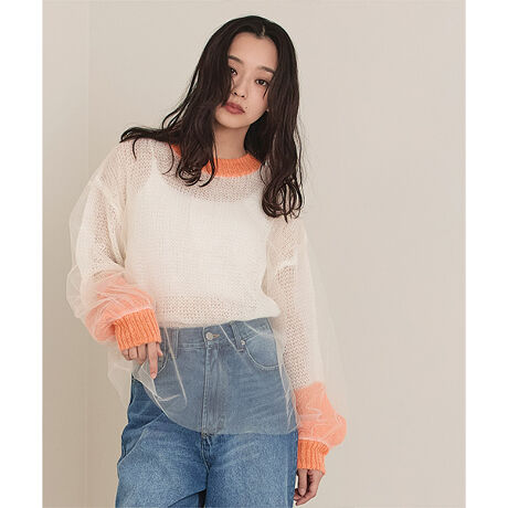 ・ローゲージニットにチュール素材がドッキングされたニット。