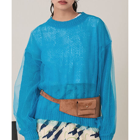 ・ローゲージニットにチュール素材がドッキングされたニット。