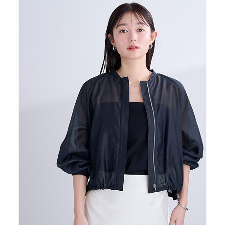 バックのヨークが女性らしい印象のシアーブルゾン。◆DETAIL程よく透け感のあるシアー素材でトレンド感を演出。ファスナーの見えない比翼デザインでフロントもすっきり。裾はドロスト仕様でシルエットの変化も楽しめます。◆COORDINATEインナーにノースリーブのトップスやワンピースも合わせやすい一枚。[型番:BDXN1767]