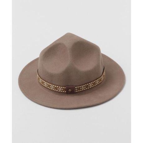 [型番:CKOP4301-2024]フラットブリムのマウンテン型ハット。肉厚なウール100%フェルト生地を使用しており、コーデの引き締めアイテムにもおすすめ。織りデザインのテープがワンポイント。サイズ調整可能
