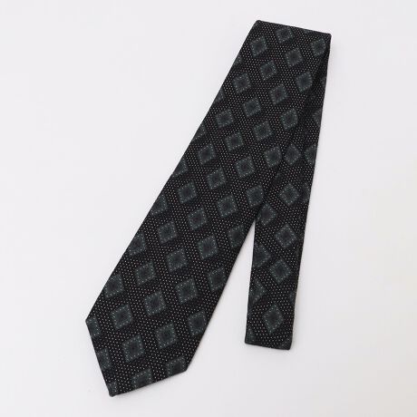 ウール生地にドットと小紋柄のプリントを施したネクタイ。