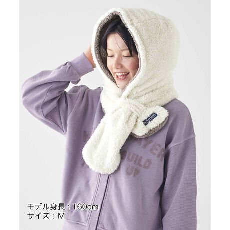 フード型のもこもこボアで頭全体から首まで暖かい!