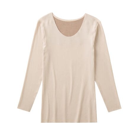 ・起毛素材で肩と背中を部分保温。動きやすい綿混ストレッチ素材。完全無縫製で着心地すっきり、着ぶくれしにくい。