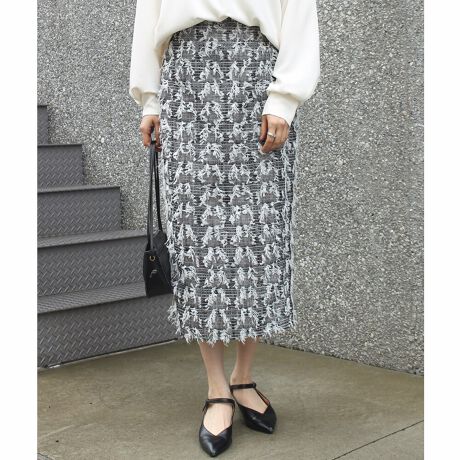 表面感のあるフリンジツイード素材のスカート。