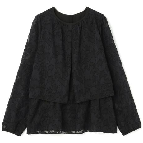 【長袖】カットジャカードレイヤードプルオーバー ブラウス ブラック ウォッシャブル 防シワ