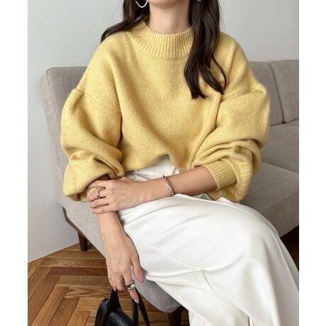 天竺編み 袖ボリューム 長袖 ニット トップス