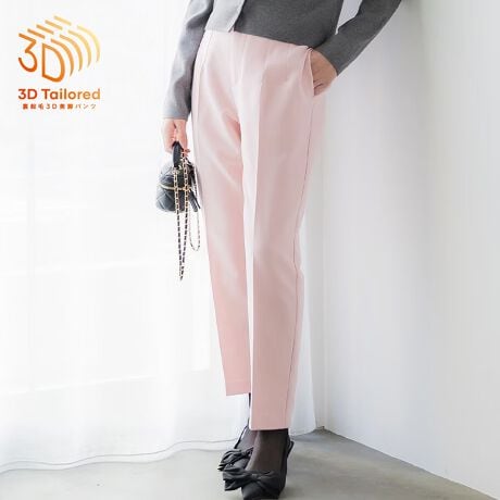 無地でシンプルなデザインながら、センタープレスとダーツ入りのテーパードシルエットで美脚効果。