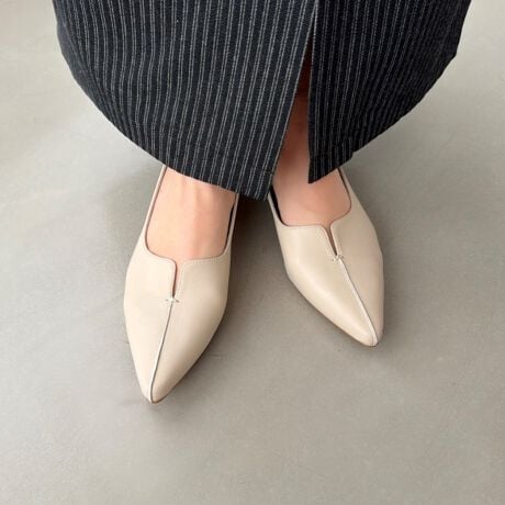 コメント:素足だと少し踵が抜ける為、靴下や中敷き調整がいいと思います。ポインテッドトゥですが幅にゆとりを感じました。ローヒールなので通勤にもおすすめです。
