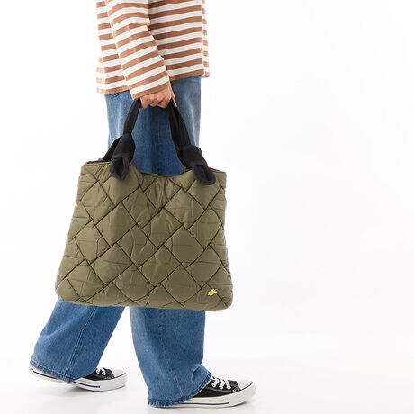 オリジナルバッグ”ステラ”シリーズの大きめサイズバッグ。とても軽く、A4サイズがしっかり入ります。イタリアのTEN=LUIS社で生産された中綿キルトです。中綿にスライパーニットを使用しているため、膨らみが出て立体感を特徴にした大人バッグです。(生地原産国イタリア)