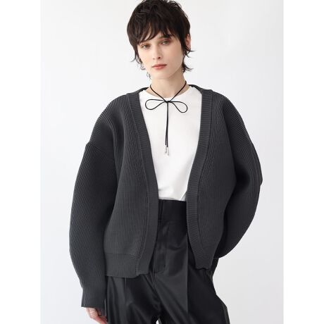 構築的なフォルムが際立つニットカーディガン。バルキーなサイジングかつ前後差のあるシルエットは、羽織るだけで自然と肩の力を抜いたこなれた雰囲気に。スタイリングのテイストを選ばないシンプルな仕立ても魅力の一つ。インナーの素材に変化をつけることでロングシーズン着こなしに変化を加えながらお楽しみいただけます。