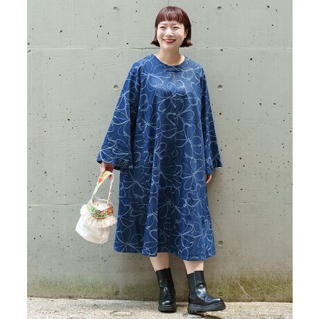 大好評だった柄デニムでワンピースを作りました。