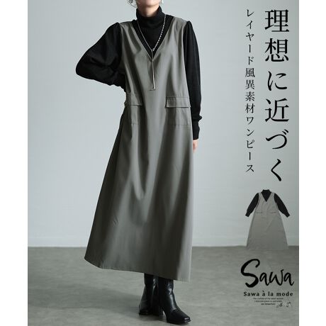 ふわりと軽やかに広がるスカートが美しく、グレー×ブラックのシックな色合いが大人っぽさを演出するロング丈ワンピース。一見、ニットにジャンパースカートを重ねた様なレイヤード風デザインで一枚で様になるから忙しい日もコーデに悩みません。ゆったりめのハイネックで小顔効果を誘い、控えめなふんわり袖が二の腕をカバーしながらレディ感をプラス。背中には大きめなリボンがアクセントになり、後ろ姿を甘くさせてくれます。フラップ付きのパッチポケットが抜け感漂い、裾にはボタンが配され、外してスリットにすることも可能な2way仕様です。