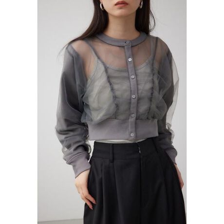 2024 Autumn&Winter item ■商品(デザイン)ポイント薄手のカットソー素材と繊細で張りのあるチュール素材をドッキングしたカーディガンです。■商品ディティールギャザーをたっぷりと施し、立体感のある仕上がりにしています。コンパクトなクロップド丈で今年らしく仕上げました■スタイリングワイドパンツや、カジュアルなパンツを合わせたり、タイトスカートと合わせても大人っぽくも着こなせます。キャミワンピースやサロペットの上に羽織るのもおすすめです。