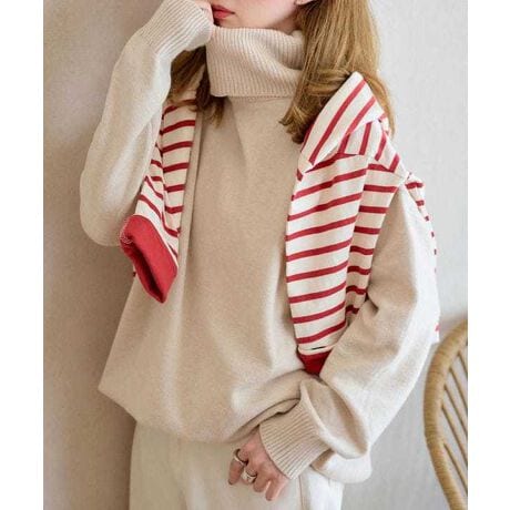 ボートネックとタートルネックの2typeデザインでレイヤードしたり一枚でもサマになる一着。