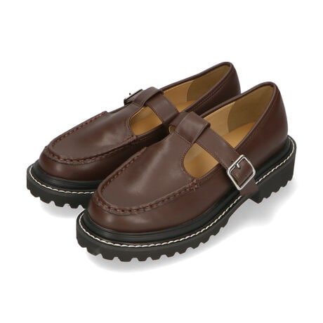 マニッシュなデザインが目を引くTストラップシューズは、旬の厚底トラックソールでボリュームをプラスしてクラシカルすぎない印象に。