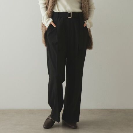 ベルト付きタックワイドパンツセットアップ対応【洗濯機洗い可】