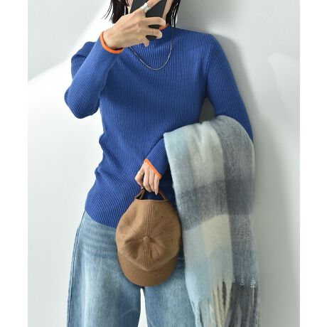 程よく厚みのある生地で肌触りの良いニットです。襟周りと袖口の配色がアクセントになり、着るだけでニュアンスが出て今っぽさを演出してくれます。また手元を女性らしく演出してくれるのも嬉しいポイントです。