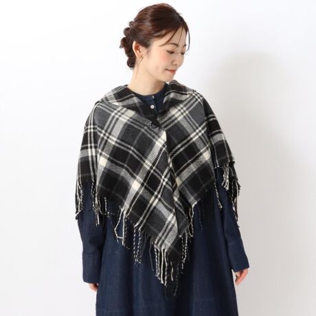 ◆【ワンズテラスオリジナルあったか】チェック柄 ギャザーケープ