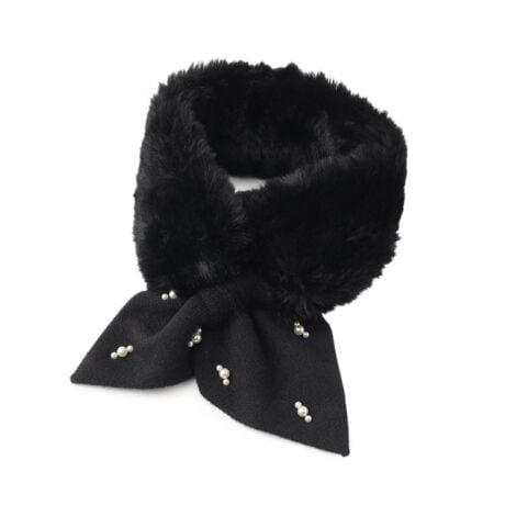 大人可愛い フェイクパール付ニット×フェイクファープチティペット