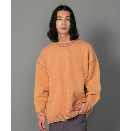 [型番:205241044]ピグメント加工を施したくすみカラーがこなれ感ある着こなしに見せるニットトップス。シンプルですが、いつもとひと味違ったヴィンテージ感が◎ボリュームのあるシルエットなので、シャツをインナーに合わせたレイヤードスタイルもお勧め。カジュアルコーデの定番アイテムとしても重宝すること間違いなしです。※ピグメント加工によりブラックはブラウン系の色味、ピンクはオレンジ系の色味となっております。